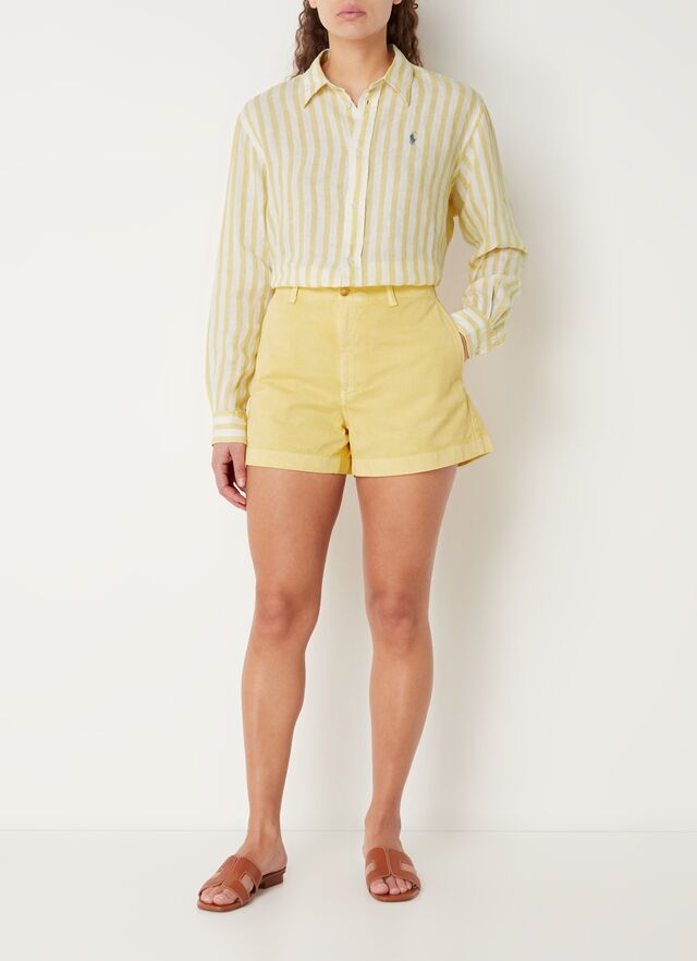 High waist straight fit korte broek met streepprint